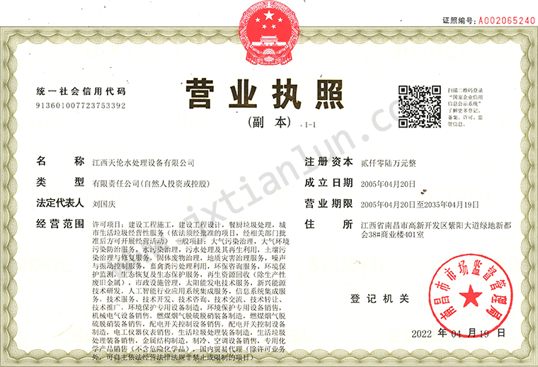 2005年:天倫進入高新開發(fā)區留學生創(chuàng)業(yè)園,進入快速發(fā)展階段,成立江西天倫水處理設備有限公司